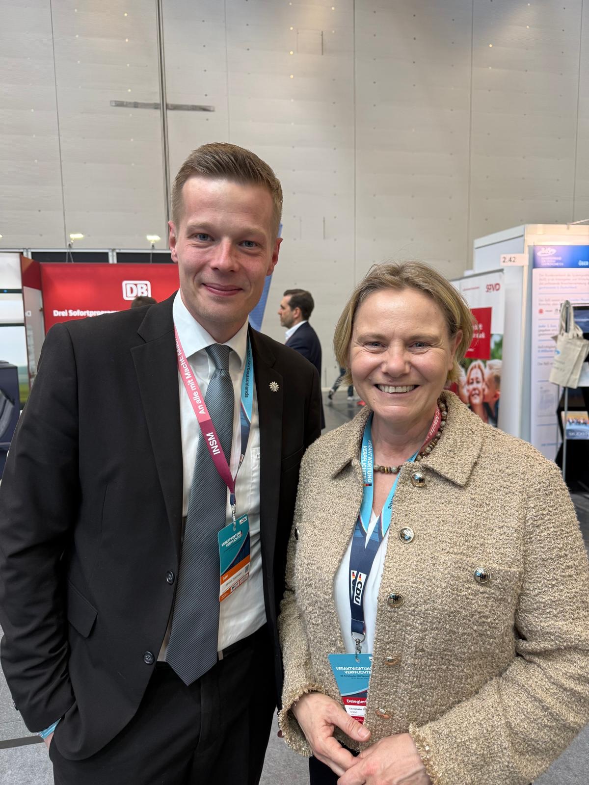 Volle Unterstützung für unsere Polizei! 💪🏻 Ich hab mich sehr über das Treffen mit @manuel_ostermann heute auf dem heutigen CDU-Bundesparteitag in Stuttgart gefreut. Vielen Dank für Ihre hervorragende und wichtige Arbeit sowie Ihren starken Einsatz für unsere Polizeibeamtinnen und -beamten. 🙏🏻❤️💪🏻 Und natürlich trifft man auf Parteitagen noch viele weitere tolle Menschen.😍 #christianestaab #polizei #manuelostermann #cdupt26