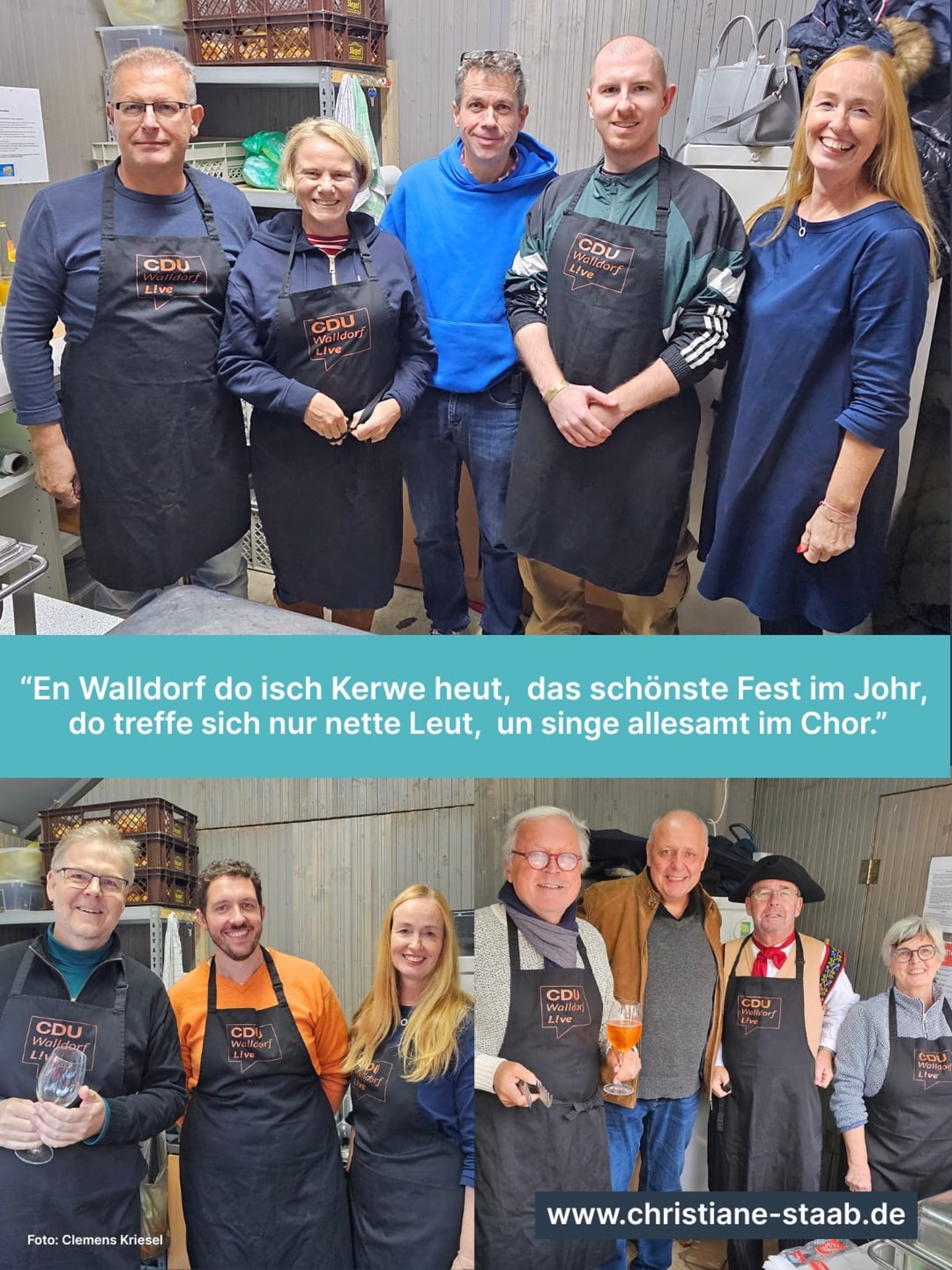 Die Hauptstraße voll, die Stimmung famos,  bei Hugo und Spritz ging richtig was los! 🍹    Der Kerwesnack ? heiß und so lecker gegessen,  von der Metzgerei Pütz ? kaum zu vergessen. 🥪    Ob Petra, Max, Andreas, Joachim, Uwe,  Clemens, Mathias ? alle im "Groove"! 🎶  Katrin, Holger, Christiane dabei,  Agim, Gerhard und Philipp ? das Team war frei! 💪    Die Gläser klangen, die Menschen lachten,  bis spät in die Nacht ? was für herrliche Kerwetrachten!     Ein großes Dankeschön ? das steht fest,  an alle, die kamen, ihr wart unser Fest! 🎡    (Clemens Kriesel / ChatGPT)